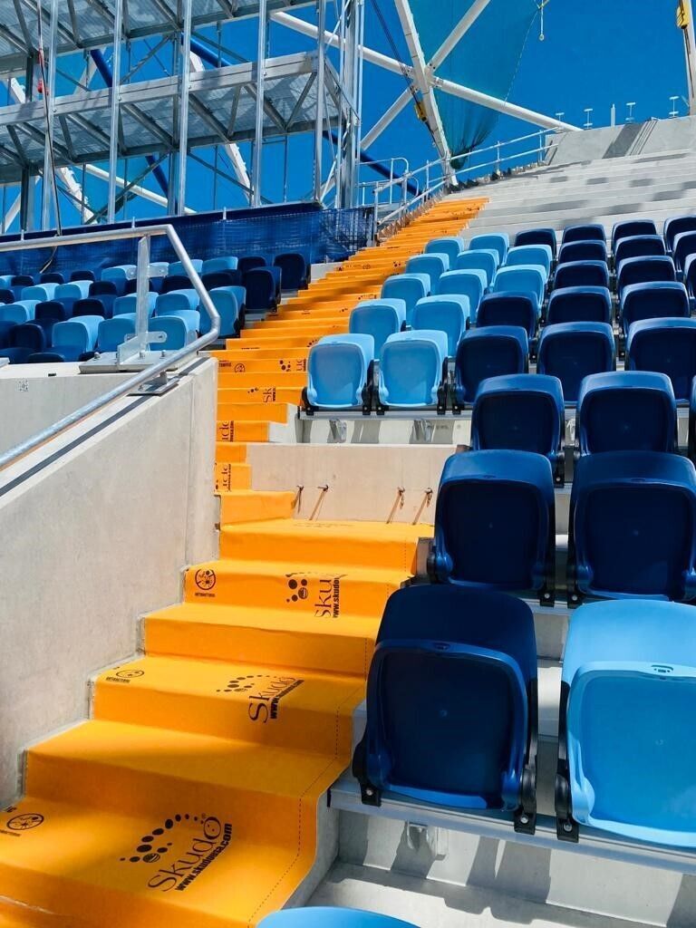 Flame-retardant, water-resistant, anti-microbial and UV stable, our temporary surface protection for concrete is world class.