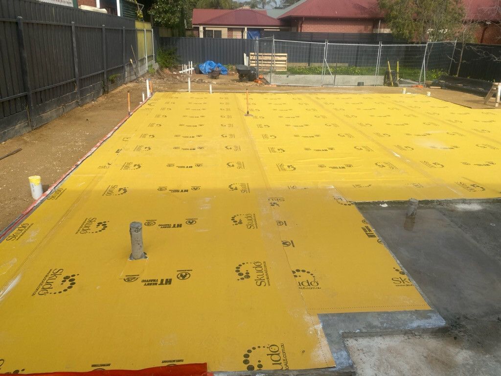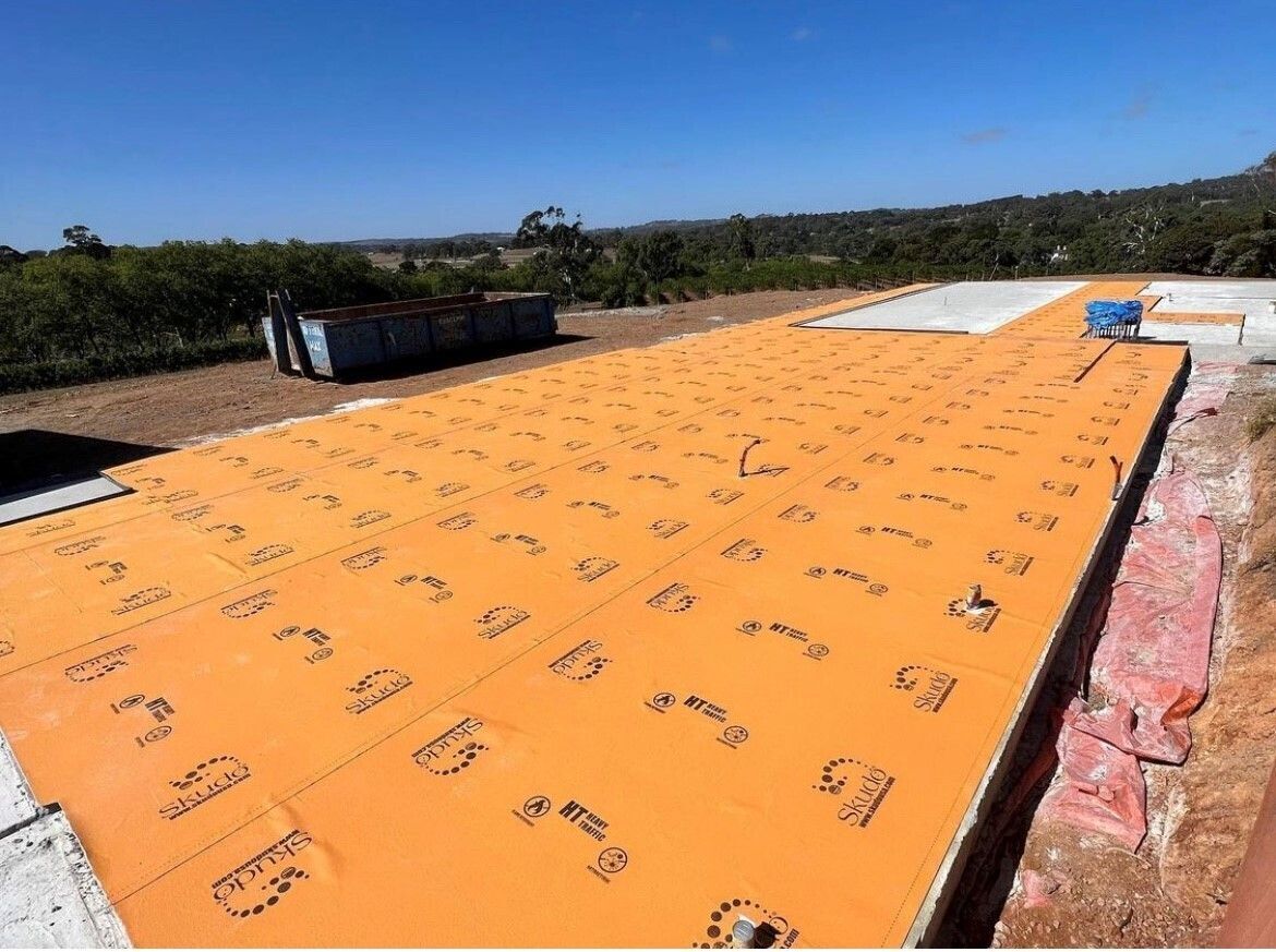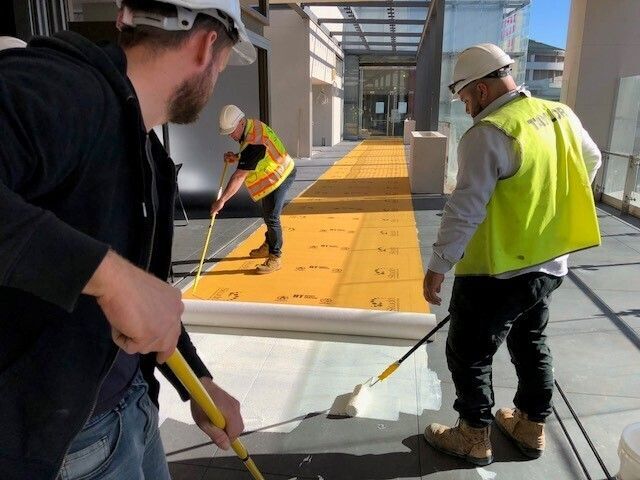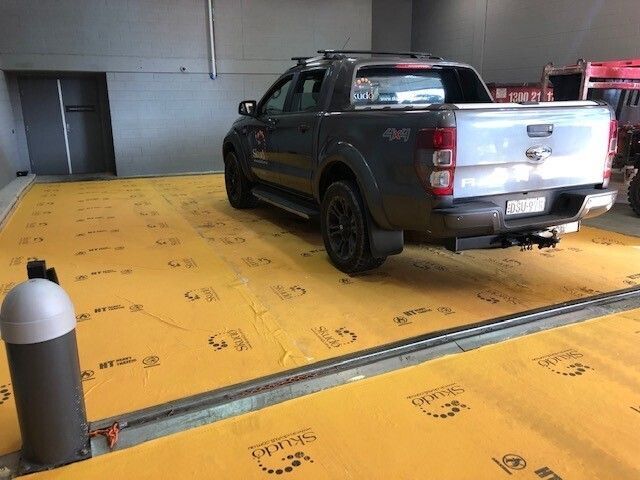- When installing loose lay (dry lay), avoid excessive taping on the overlap of the matting, to assist with minimising the possibility of hydration marks*. For polished concrete we also recommend laying geo fabric under the Skudo HT Commercial mat.