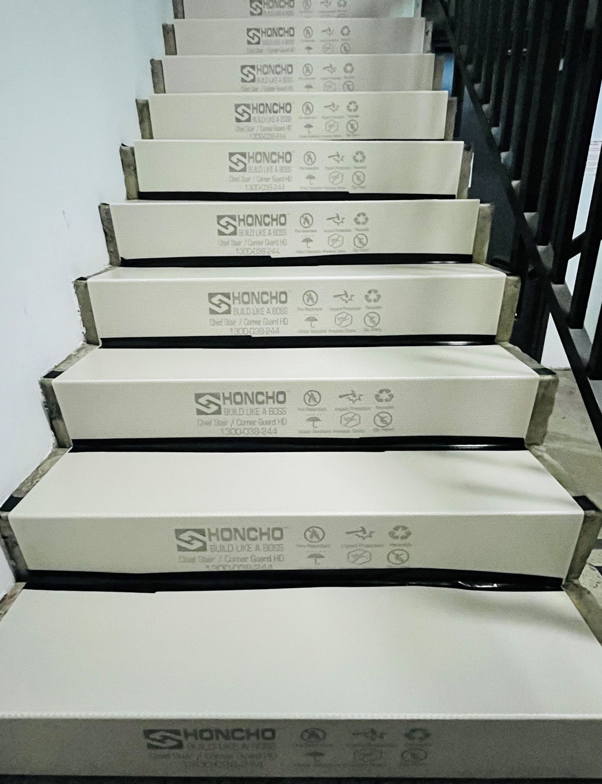 - Honcho Fire Rated Chief Stair Guards: Specifically designed to fit around sharp edges, such as corners, stair treads, and wall edges, our Honcho Fire Rated Chief Stair Guards are heavy-duty and impact-resistant. Say goodbye to costly remediation!